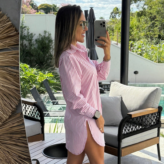Sold outSHIRT COVER UP - WHITE AND PINK